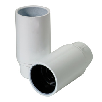 Ce raccord de lampe Profile convient pour le raccordement d'une lampe avec une douille E14. Le raccord est en plastique et de couleur blanche.