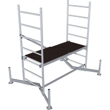 La hauteur de travail de l'échafaudage de base est de 3 mètres. La surface de la plateforme est de 1,5x0,6 m. La capacité de charge est de 200 kg/m².