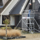 Les roues (Ø 125 mm) de l'échafaudage d'intérieur sont réglables et équipées de freins doubles. De cette façon, vous êtes plus en sécurité.