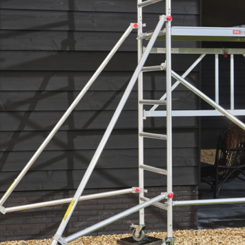 La RS TOWER 34 est une tour pliante légère. Convient pour l'extérieur. Idéal pour une utilisation en intérieur grâce à sa taille compacte. Avez-vous jamais envie d'aller plus haut? Le système est modulaire. Avec les modules 2 et 3, vous pouvez le construire jusqu'à une hauteur de travail de 7,80. Cet échafaudage d'intérieur est fait pour le bricoleur intensif. Il est également permis d'utiliser l'échafaudage pour des travaux professionnels. La charge maximale est de 150 kg/m2.