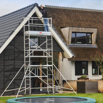 La RS TOWER 34 est une tour pliante légère. Convient pour l'extérieur. Idéal pour une utilisation en intérieur grâce à sa taille compacte. Avez-vous jamais envie d'aller plus haut? Le système est modulaire. Avec les modules 2 et 3, vous pouvez le construire jusqu'à une hauteur de travail de 7,80. Cet échafaudage d'intérieur est fait pour le bricoleur intensif. Il est également permis d'utiliser l'échafaudage pour des travaux professionnels. La charge maximale est de 150 kg/m2.