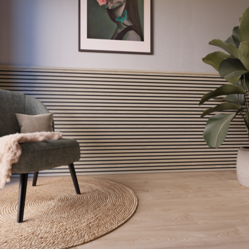 Cet échantillon du tasseau Decowall Acoustic chêne 18x30cm vous permet d’évaluer chez vous si la couleur et le style s’accorde à votre intérieur. Cet échantillon correspond au panneau tasseau 260x30cm (art. 263622)