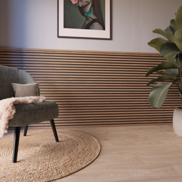 Cet échantillon du tasseau Decowall Acoustic chêne bronze 18x30cm vous permet d’évaluer chez vous si la couleur et le style s’accorde à votre intérieur. Cet échantillon correspond au panneau tasseau 260x30cm (art. 263624)