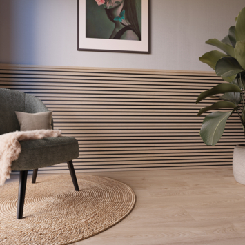 Cet échantillon du tasseau Decowall Acoustic chêne naturel 18x30cm vous permet d’évaluer chez vous si la couleur et le style s’accorde à votre intérieur. Cet échantillon correspond au panneau tasseau 260x30cm (art. 263626)