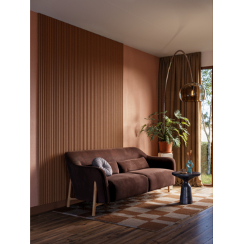 Le Decowall Acoustic Curve est le mur en lattes idéal pour créer une atmosphère chaleureuse et accueillante dans votre pièce. Les lattes semi-circulaires au look tissu ou bois créent un aspect unique et doux qui enrichit visuellement la pièce. Parfait pour les salons, les chambres à coucher ou les bureaux à domicile, où le confort et un cadre de vie agréable sont essentiels. Outre ses avantages esthétiques, le Decowall Acoustic Curve offre également une meilleure isolation acoustique. Les matériaux du mur en lattes permettent une meilleure atténuation du son. Le Decowall Acoustic Curve est donc idéal pour les endroits où vous souhaitez un confort acoustique supplémentaire, comme le salon, la chambre à coucher ou le bureau à domicile. Grâce à la couche de feutre et au MDF, le Decowall Acoustic Curve contribue également à un certain degré d'isolation thermique, ce qui fait du mur en lattes un choix d'intérieur intelligent. La facilité d'installation vous permet d'appliquer rapidement le mur en lattes sur votre mur ou plafond lisses ou irréguliers à l'aide de colle, de mastic et/ou de vis. Quelle que soit la pièce que vous souhaitez aménager, le Decowall Acoustic Curve s'adapte sans effort à tous les styles d'intérieur.