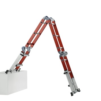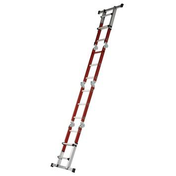 L'échelle pliante Varitrex d'Altrex dispose de 4 X 3 marches antidérapantes. Sa longueur minimale est de 90 cm et sa hauteur de travail de 430 cm. Elle ne pèse que 16,1 kg mais peut en supporter jusqu'à 150.