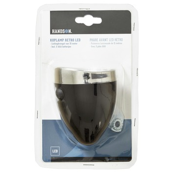 Le phare avant Classic noir de Handson est un phare de base qui fonctionne sur piles. Avec son design classique, la lampe est particulièrement adaptée pour une utilisation sur les vélos rétro et hollandais. Le Classic est très convivial grâce au bouton-poussoir confortable et au changement simple de la batterie. La lampe LED utilisée dans le phare a une durée de vie de plus de 50 000 heures.