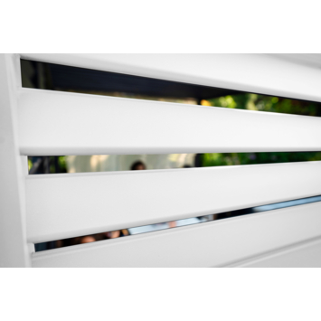 Le panneau latéral à lamelles pour pergola Classic et Deluxe est une solution fonctionnelle et élégante pour fermer les côtés de votre pergola. Le panneau se compose de lattes fixes, avec lesquelles vous pouvez créer avec style une intimité et un abri supplémentaires. Les lattes sont en aluminium, ce qui les rend résistantes aux différentes conditions météorologiques et durables. De plus, la structure à lattes offre une ventilation suffisante pour laisser passer la brise, afin que vous puissiez profiter de l'air frais tout en étant protégé du soleil et des vents forts. Le panneau à persiennes est disponible en différentes tailles pour s'adapter à votre pergola et est livré avec tout le matériel de montage nécessaire pour une installation rapide. Pour une protection et une intimité optimales, vous pouvez fermer tout le côté. Mais vous pouvez également placer les panneaux dans un coin. Si vous souhaitez fermer tout le côté, vous aurez besoin de 3 panneaux. Avec les panneaux latéraux à lamelles, vous pouvez transformer votre pergola en un espace extérieur pratique et confortable dont vous pourrez profiter toute l'année.
