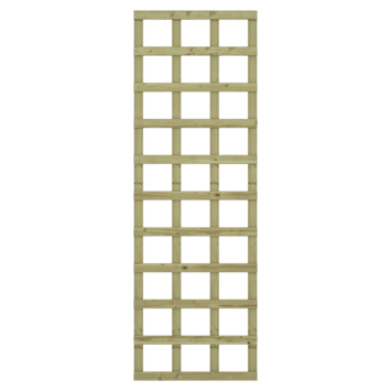 L'écran de jardin Caprice mesure ± 180x60 cm et est fait de lattes de bois. Joli, massif et naturel. L'idéal pour vos plantes grimpantes. À utiliser comme élément décoratif ou comme élément d'une clôture de jardin. Le treillis a un maillage de 14,1x14,1 cm. Le treillis est double face, offre une grande visibilité et peut être fixé aussi bien horizontalement que verticalement à l'aide de ferrures en L et vis en acier inoxydable.