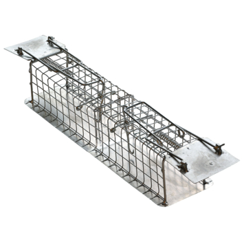 Cage à souris à 2 entrées pour capture vivante. Cette cage de haute qualité possède 2 entrées, ce qui double le taux de capture. Elle peut être placée dans les endroits où les appâts empoisonnés ne peuvent pas être utilisés ou lorsque vous souhaitez laisser les souris vivre. Dimensions: 230 (L) x 50 (l) x 50 (h) mm