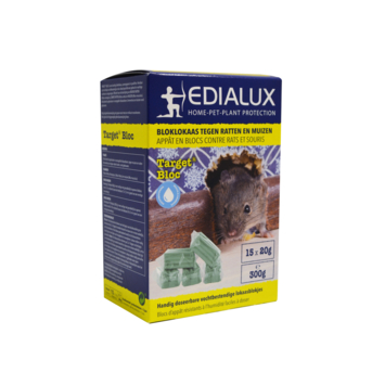 Appât puissant en blocs à base de diféthialone contre rats et souris. Les blocs sont résistants à l'humidité et donc idéaux pour l'utilisation dans les zones et environnements humides. La mort survient quelques jours après la consommation de l’appât, sans éveiller méfiance des rongeurs vis-à-vis de l’appât. Numéro d’agrément : BE2011-0013 Utilisez les produits biocides avec précaution. Avant toute utilisation, lisez l'étiquette et les informations concernant le produit.