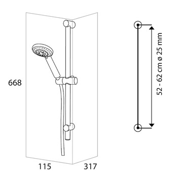 Erg makkelijk te installeren douche met stang! Oude bevestigingsplaatsen gebruikt omdat de bevestigingspunten op de stang verstelbaar zijn. Fijne douche met 5 standen die ik op 1 stand heb staan die een soort regendouche gevoel geeft.