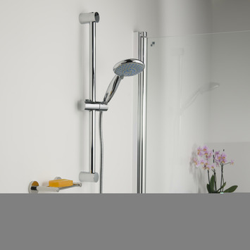 La gamme Splash de Tiger se compose de jolis ensembles de douche, de flexibles universels et d'accessoires pratiques qui vous permettent de composer votre douche de rêve. L'ensemble de douche Bologna comprend une barre chromée permettant de monter et descendre le pommeau d'un diamètre de 12 cm, 4 positions de jet et fonction anticalcaire.