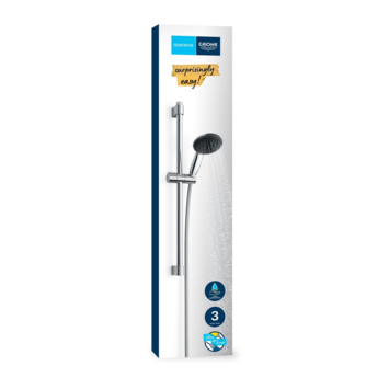 Le set de douche GROHE Vitalio Start 110 offre tout ce dont vous avez besoin pour transformer votre salle de bain et votre douche quotidienne. La douchette de 110 mm offre 3 jets pour différents moments : Rain apaisant soulage votre stress, Massage revigorant vous rafraîchit et le Jet concentré est idéal pour rincer le shampoing de vos cheveux. Tous sont faciles à utiliser grâce à l'inverseur innovant GROHE SmartSwitch situé à l'arrière de la pomme de douche. La technologie GROHE DreamSpray garantit un débit d'eau régulier à partir de chaque buse, ce qui rend chaque jet magnifiquement uniforme également. Vous économiserez également de l'eau grâce au limiteur de débit GROHE, qui réduit considérablement votre consommation d'eau sans perdre en puissance. Une pression minimale de 1,0 bar est recommandée. Grâce au GROHE SpeedClean, vous pouvez simplement enlever les dépôts de calcaire sur les buses de pulvérisation avec votre doigt. L'anneau en silicone ShockProof protège la douchette, ou le receveur de douche ou la baignoire, contre les dommages en cas de chute accidentelle. L'ensemble comprend le flexible de douche VitalioFlex Trend de 1750 mm et la barre de douche Vitalio Universal de 600 mm. Le flexible robuste est un véritable concentré de puissance et peut supporter une pression d'eau jusqu'à 5 bars, des charges jusqu'à 50 kg et des températures jusqu'à 70 °C. La surface lisse est facile à nettoyer - il suffit de l'essuyer avec un chiffon sec pour qu'elle soit comme neuve - et vous n'avez pas à vous soucier des dommages causés par le contact avec la cabine de douche ou la baignoire. Le design AntiFold empêche les tuyaux de se plier et de se tordre. La barre est équipée d'un élément coulissant et d'un support pivotant, ce qui permet de régler facilement la hauteur et l'angle de la douche. Le support supérieur est également réglable en hauteur, ce qui signifie que vous pouvez simplement utiliser les trous de forage existants. La finition GROHE Long-Life Finish de cet ensemble, à la fois éblouissante et durable, conserve son éclat pendant des années.