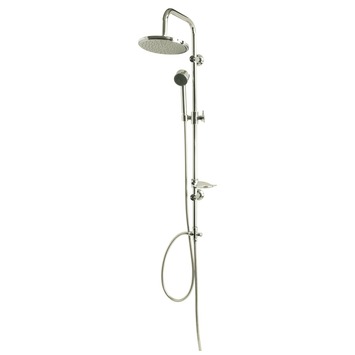 Comprenant: barre-glissière, 2 flexibles de douche 6 et 15 cm, douche pluie diamètre 2 ,5 cm, douche à main 1 position avec porte-savon. Garantie d'usine de 3 ans