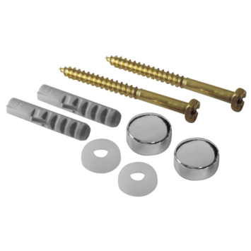 Le jeu de fixation pour cuvette WC comprend les vis, chevilles, rondelles et capuchons en synthétique.