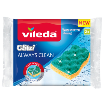 L'éponge à récurer Vileda Glitzi Always Clean allie nettoyage efficace et délicatesse pour vos surfaces fragiles. Avec un côté vert non-abrasif, vous éliminez les salissures tenaces sans rayer. Le côté en viscose jaune absorbe jusqu'à 10 fois plus de liquide que les éponges en mousse ordinaires, vous permettant de nettoyer rapidement et efficacement. Facile à rincer pour un résultat hygiénique à chaque session de nettoyage.
