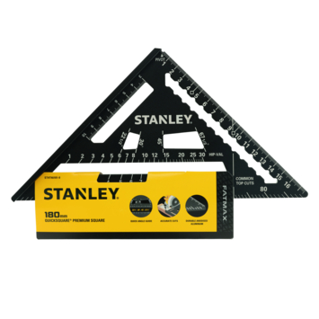L'équerre de construction STANLEY STHT46101-0 est un outil très polyvalent pour tous vos projets. Un côté est doté d'un profil extra épais, ce qui permet de l'utiliser comme guide de scie. Avec un rapporteur de 90° avec graduation par degré pour mesurer facilement les angles. Graduation pour les angles standard des chevrons pour marquer rapidement et facilement les angles. Doté de diverses encoches pour maintenir votre crayon en place, permettant de tracer des lignes parfaites sur toute la longueur d'une planche. Avec un point de pivot pour une utilisation comme rapporteur. Grâce à ses dimensions, il se glisse facilement dans votre boîte à outils. Matériau : aluminium. Longueur : 180 mm.