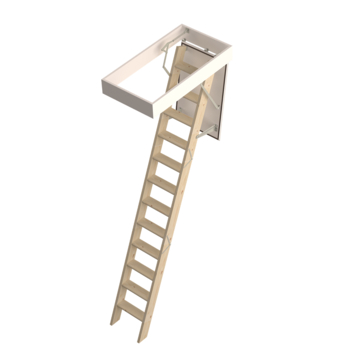 Escalier escamotable Isowood 140x70 cm. Échelle en sapin 12 marches, 3 sections. Épaisseur de la trappe 33 mm. Coefficient d'isolation : 1,20W/m²K. Conforme à la norme EN 14975. Caisson MDF Blanc. Charge max. 150kg.