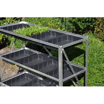 L'étagère Grow Rack 12 en aluminium comprend 3 niveaux de culture et est livré avec 12 plateaux de semences solides amovibles. Vous êtes donc immédiatement équipé pour commencer à semer. L'étagère mesure 99x40x100 cm. Les conteneurs de 40x25x5,5 cm peuvent facilement être retirés individuellement. Les conteneurs sont également disponibles séparément.