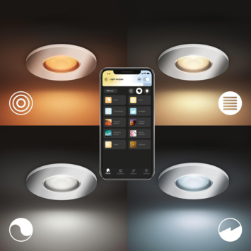 Les spots Adore, on adore ! Vous allez adorer ce jeu de 3 spots encastrés Philips Hue Adore dans votre salle de bain. Ces spots sont équipés d’une ampoule LED GU10 White ambiance offrant un choix de 50 000 nuances de lumière, du blanc chaud au blanc froid. Vous pouvez sélectionner la teinte et la luminosité qui conviennent le mieux à chaque moment. Par exemple, un blanc froid pour bien démarrer la journée et un blanc chaud et doux pour une fin de journée relaxante. Depuis l’application Philips Hue sur votre smartphone ou tablette, vous pouvez facilement allumer, éteindre ou varier l’intensité des deux ampoules LED. En vous connectant au Bridge Hue, vous accédez à toutes les fonctionnalités d’éclairage intelligent, telles que la personnalisation des scènes lumineuses, le réglage des minuteries et l’ajout d’accessoires comme des détecteurs de mouvement et des interrupteurs sans fil intelligents. Avec un indice de protection IP44, les spots Adore sont spécialement conçus pour les locaux humides.