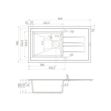 Évier 1 bac Molto Van Marcke 86x50 cm gris béton
