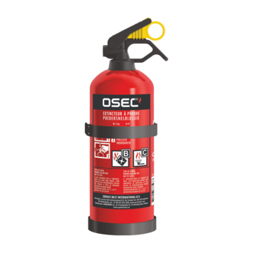 Extincteur à poudre de 1 kg pour l'extinction des incendies de classe B et C. Classe d'incendie B : pour l'extinction des incendies de substances liquides telles que l'essence, le diesel, l'acétone, la cire, la graisse et de substances qui fondent lorsqu'elles sont chauffées, comme la cire de bougie et les matières plastiques. Classe d'incendie C : pour l'extinction des feux de gaz tels que : propane, GPL, gaz naturel, acétylène, méthane et hydrogène. La meilleure façon d'éteindre un incendie de classe C est de commencer par fermer le robinet de gaz, afin d’éviter le risque d'explosion. Ne convient pas pour éteindre les graisses telles que les graisses de friture ou les huiles de cuisson. Pour cela, utilisez un extincteur pour la classe de feu F. Cet extincteur est spécifiquement destiné au marché belge et est conforme à la norme belge BENOR 2028.