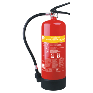 Goede brandblusser met schuim. Daarmee kan je door er snel bij te zijn een grote huisbrand vermijden. Lijkt even belangrijk te zijn als een rookmelder.