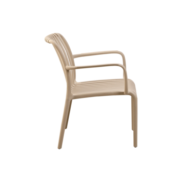 Le fauteuil est empilable, ce qui permet de superposer plusieurs chaises lorsque vous ne les utilisez pas. Une solution pratique pour libérer de l’espace sur votre terrasse ou dans votre espace de rangement.