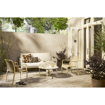 Avec une hauteur d’assise de 39 cm et une profondeur de 47 cm, ce fauteuil offre une position basse et confortable. Les accoudoirs apportent un soutien supplémentaire lorsque vous restez assis plus longtemps, par exemple pour lire un livre ou profiter du plein air.