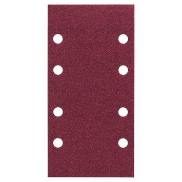 Feuille abrasive Bosch, grain 120, 8 trous, 93x185mm pour ponceuses orbitales avec système auto-agrippant. 10 feuilles abrasives universelles de haute qualité pour un ponçage rapide et fin sur des surfaces droites. Appartenant au concept Retirer/Préparer/Terminer : 3 catégories claires, triées par application. Une seule qualité pour les surfaces en bois et en peinture. Rapport qualité/prix optimal. Parfaitement adapté pour le bricoleur.