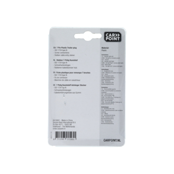 La prise Carpoint en plastique robuste à 7 broches peut être utilisée pour les remorques et les remorques, mais aussi pour les porte-vélos ou les caravanes. La prise garantit que vous pouvez actionner le frein, le clignotant ou tout autre voyant depuis la voiture.