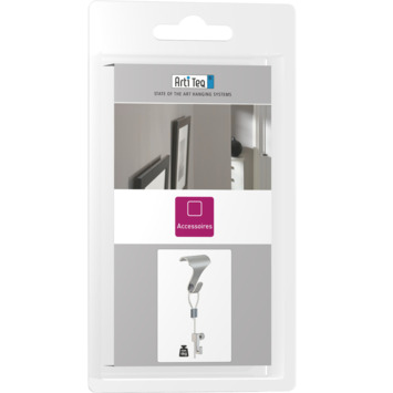 L'ensemble cordon perlon Artiteq avec crochet galerie + crochet 4kg est un ensemble complet composé d'un cordon de suspension avec crochet galerie. Le crochet a une capacité de charge de 4 kg. Vous pouvez utiliser cet ensemble avec une cloison ou une corniche en bois. De cette façon, vous pouvez facilement accrocher votre tableau au mur.