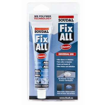 Le produit le plus polyvalent de Soudal est Fix All. Le tube Fix All Classic est une solution de couleur blanche pour les petits travaux de collage et peut être utilisé sur toutes les surfaces, dans toutes les conditions, à l’intérieur comme à l’extérieur. Un produit flexible et étanche.