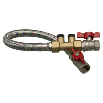 Flexible de remplissage 1/2" pour installation de chauffage central Levica. Avec flexible tressé, 2 robinets et clapet anti-retour. Attention, évités le contact du flexible avec des produits agressifs ou tranchants et ne noyez jamais le flexible dans la maçonnerie.