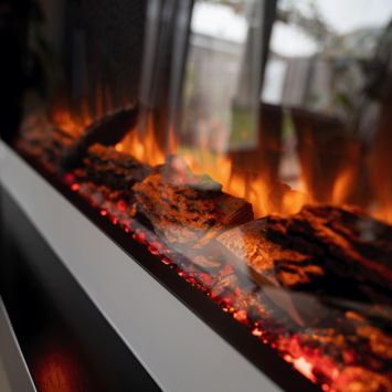 La cheminée encastrable Livn Essence 140 est équipée d’une fonction de chauffage réglable séparément avec deux niveaux de chaleur (1000 et 2000 W) pour un chauffage d’appoint supplémentaire. Pour une expérience complète, des effets sonores ont été ajoutés à la cheminée.
