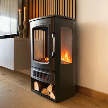 Apportez une ambiance chaleureuse et conviviale à votre maison avec ce foyer élégant et indépendant, doté d’un espace de rangement pour les bûches. Grâce aux fenêtres panoramiques latérales, profitez de l’effet de flamme réaliste à LED sous tous les angles.