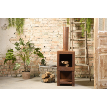 Ce foyer de terrasse en acier est doté d’une belle finition rouille. Un bel accroche-regard qui s’intègre parfaitement dans chaque jardin. Très pratique, le range-bûches est intégré au foyer.