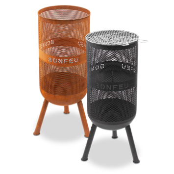 Mooie vormgeving, maar de wanden hebben geen versteviging. Benieuwd hoe lang die het gaan houden. Het is geen vuurkorf waar je eens lekker flink wat hout in kunt raggen. Een beetje een vuurkorf voor stadsmensen die bij de Action een netje hout halen, zeg maar. Het dichte raster is prettig, voorkomt dat stukken hout uit de korf vallen en dat het vuur alle kanten uit vonkt.