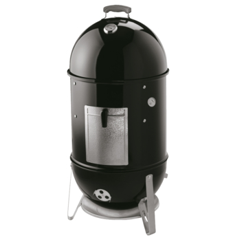 Vous appréciez le Smokey Joe de Weber mais vous aimeriez aussi pouvoir fumer vos viandes ? Voici le Smokey Mountain Cooker : ce barbecue noir d'un diamètre de 47 cm est destiné à 8 personnes et dispose de 2 grilles pour à la fois cuire et fumer, d'une grille de ventilation et d'un couvercle avec thermomètre intégré, ainsi que d'une poignée.