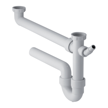 La garniture d'écoulement avec siphon en U de Geberit permet l'évacuation des eaux d'un évier ou lavabo avec 2 bacs et dispose en plus d'un raccord pour lave-linge ou lave-vaisselle.