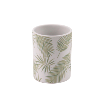 La tasse Allibert Oural debout Blanc prend tout son sens au lavabo. La tasse mesure 11 cm de haut et a un diamètre de 6,7 cm. Vous n'utilisez pas seulement la tasse pour vous rincer après vous être brossé les dents, vous pouvez également l'utiliser comme porte-brosse à dents ou pour utiliser des lames de rasoir, par exemple. La tasse est en céramique blanche. L'imprimé feuilles de couleur verte donne un bel effet naturel.