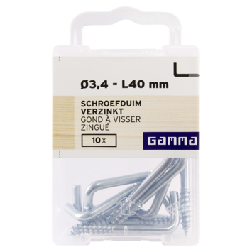 Ce pouce à vis GAMMA est en acier galvanisé. Le pouce de la vis mesure 40 mm de long. Les pouces à vis ont un filetage normal. Ils se prêtent bien à la suspension d'objets plus lourds. Dans de nombreux foyers, un tableau, un miroir ou une horloge est suspendu à une vis à oreilles dans le mur. Un cordon, un fil ou un ruban peut facilement se coincer derrière le pouce de la vis. À côté de. pouce à vis, il existe également des crochets à vis de GAMMA dans le même but. Les crochets à vis sont munis d'un anneau, tandis que les pouces à vis sont droits. Un paquet contient 10 pouces de vis.