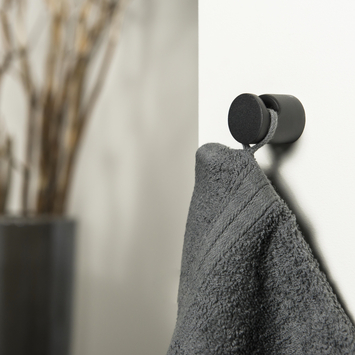 Bold est une ligne d'accessoires robuste pour votre salle de bains caractérisée par une élégance puissante et des chromes brillants ou du noir mat. Tous les accessoires ont des formes rondes, comme ce crochet noir de grande taille prêt à supporter les plus grandes serviettes.
