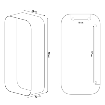 Les cubes de Sealskin à angles arrondis existent en 2 dimensions différentes et peuvent s'utiliser dans la salle de bain, la cuisine, le corridor, soit partout où vous voulez décorer ou ranger. Le cube de 50 cm de long sur 24 cm de haut et 12 cm de profondeur se visse au mur au moyen des vis fournies. Après fixation, les vis ne sont plus visibles. Rien ne vous empêche de le fixer verticalement, pour mettre en valeur un vase élégant avec sa fleur par exemple. Pour profiter plus longtemps de votre étagère, nettoyez-la régulièrement avec un chiffon humide