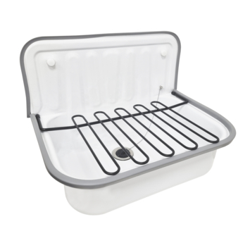 La grille Atlantic pour le vidoir Tevin est destinée à être montée sur cet évier, qu’il soit blanc ou noir. Lorsque vous dépliez la grille, vous pouvez y placer un seau pour le remplir d’eau, et il est facile de retirer le seau rempli sans avoir à le soulever par-dessus le bord de l’évier. Vous pouvez rabattre la grille pour vider l’eau sale. Un accessoire pratique qui vous évitera des douleurs au dos.