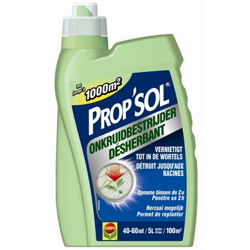 Prop'Sol détruit les mauvaises herbes jusqu'aux racines. Aucune ne lui résiste au-delà de 2 heures. Vous pouvez ensuite réensemencer sans problème. Conseil : utilisez les biocides avec précaution. Avant toute utilisation, lisez l'étiquette et les informations concernant le produit.