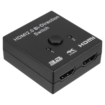 L'interrupteur HDMI marche dans les 2 directions : vous pouvez choisir entre 2 appareils reliés à 1 écran (portable et console de jeu p.ex.) ou 2 écrans commandés par 1 seul appareil.