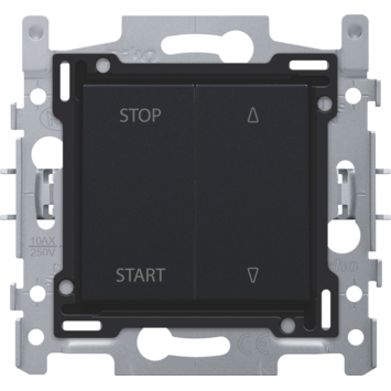 Cet interrupteur pour volets Intense Matt Black est un mécanisme à impulsion avec commande rotative 25A et est pourvu d'une fixation avec des griffes. Cet interrupteur contient un socle et un set de finition.
