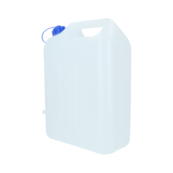 Degelijke kan met handig aftapkraantje voor het noodpakket!